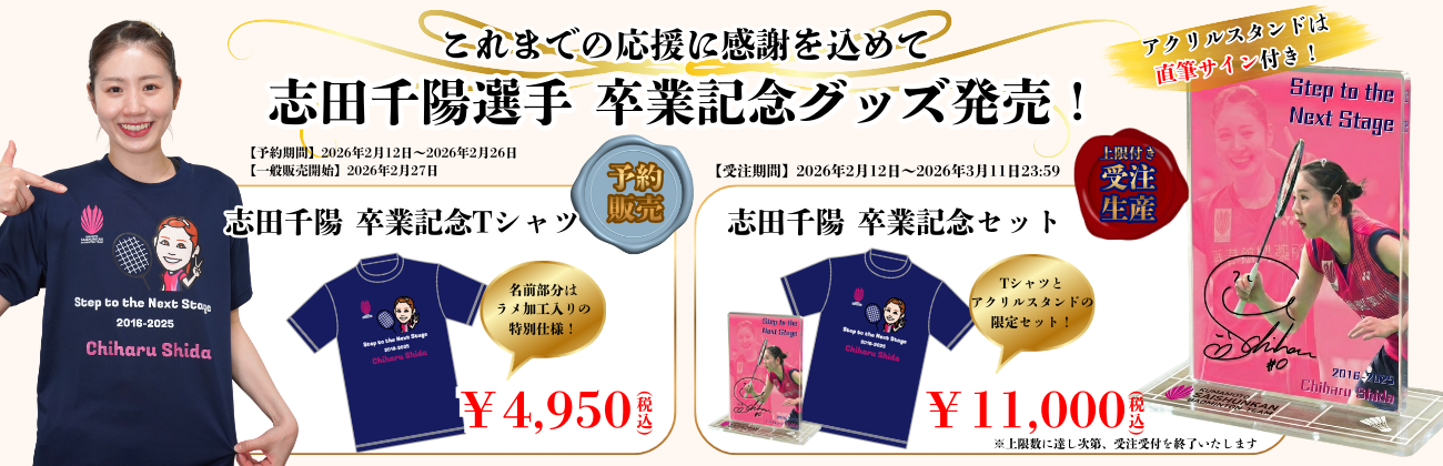 この機会にぜひ、くまもと再春館製薬所バドミントン部公式オンラインショップでのお買い物をお楽しみください! 選手たちへの熱い応援、引き続きよろしくお願いいたします!