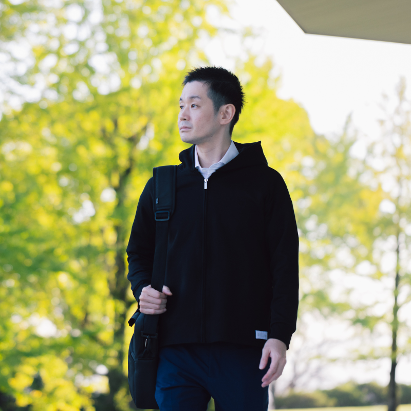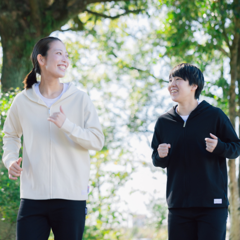 生地は編み目が交差しながら絡み合う「ダブルジャージー構造」で、しっかりとした厚みとハリ感、そしてなめらかな風合いが特徴。型崩れしにくく、シワになりにくいです。薄手でごわつかず、シーズンを問わず快適に着用いただけます。スポーツ後のリカバリーはもちろん、日々のコンディションを整えたい方にも最適な、シーンレスな一着です 。